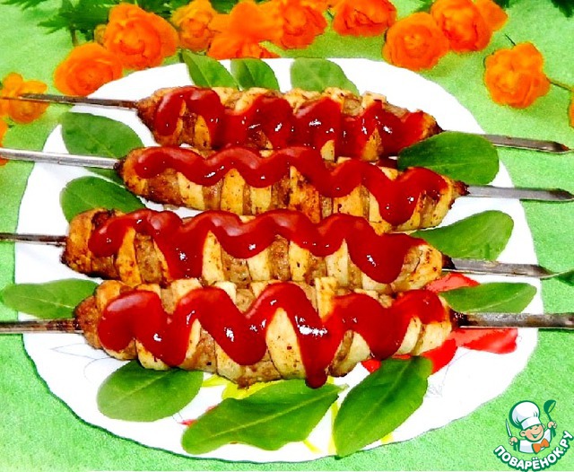 А теперь формируем "люля - кебаб" на шампуре на черносливы.