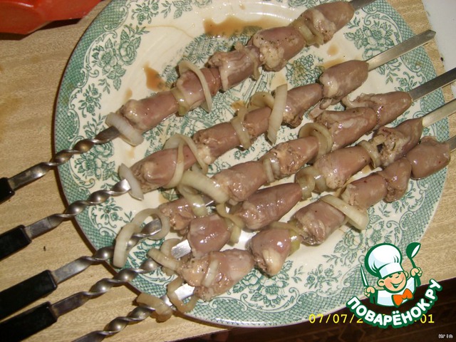 Соль, перец, специи, естественно, по вкусу. И оставляем все это дело на час, полтора. Сердечки маленькие им много не надо. Если есть больше времени - хуже не будет)).