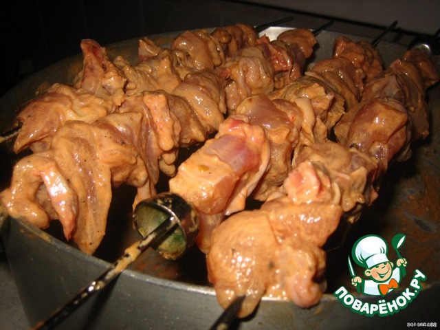 | Шашлык планировали на природе, но утром, конечно же, стало лень топать на холод))) и вот замочила я куриные грудки и достала свой доисторический "огонeк"... Получилось сочно (как ни странно) и очень вкусно! Не знаю, есть у кого такой агрегат или нет, но для уличного мангала я мариную также))) |