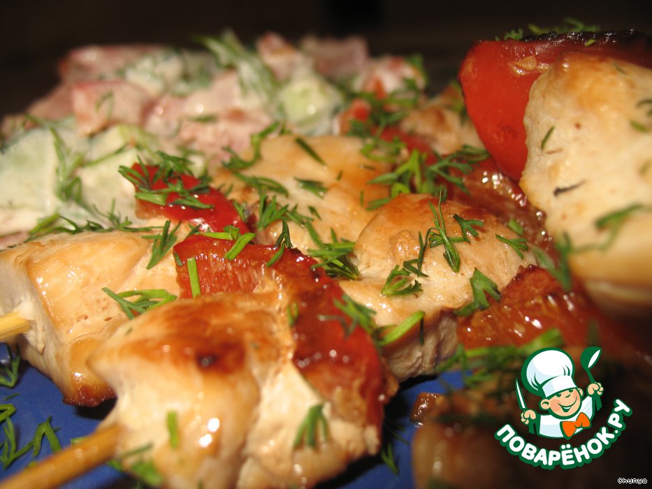| Наверняка похожий, а может быть и совсем такой же, рецепт на сайте уже есть, но я не сверялась с поваренком и придумывала все на ходу. Шашлык - это такое традиционное летнее блюдо, а сейчас на улице февраль и как никогда хочется летнего тепла. Поэтому сегодня я удивила домашних таким "Кусочком лета". Зря говорят, что шашлык готовят только мужчины - у меня тоже получилось, причем в домашних условиях! Порадуйте и Вы своих родных летним настроением! |