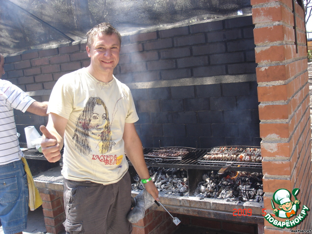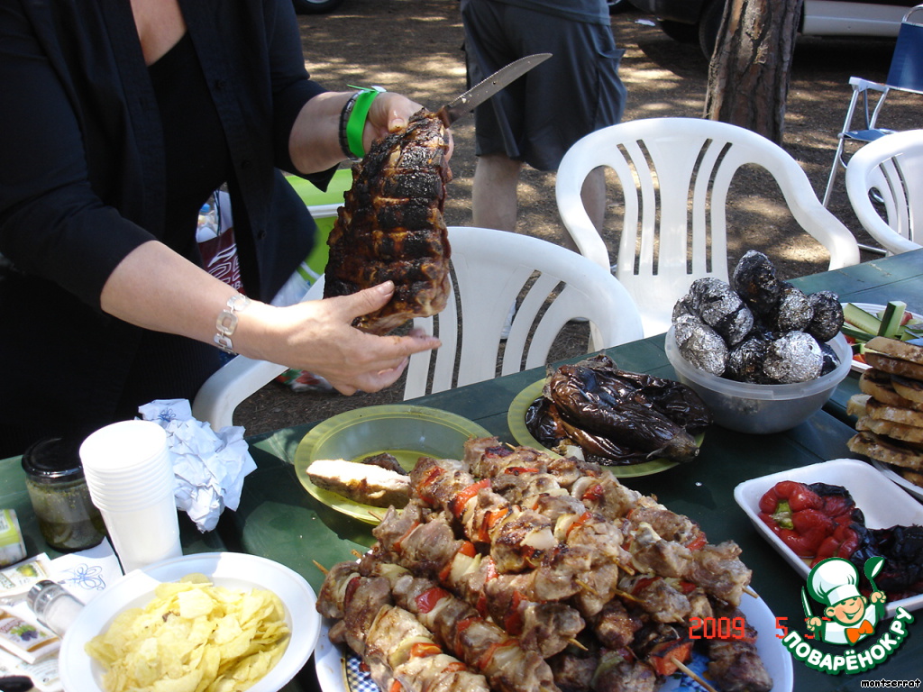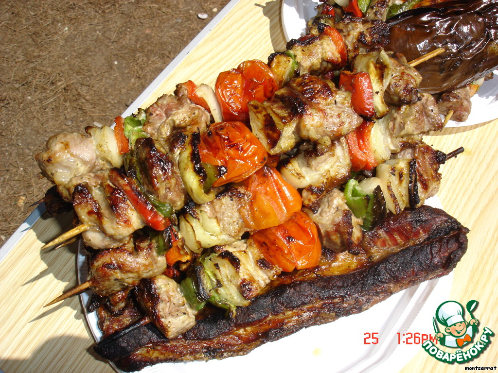 | Загружая этот рецепт, я несколько отступаю от правил. Предыдущие 100 рецептов, загруженные мной на Поваренке, принадлежат мне: я готовила блюда, их фотографировала, их же ела. В даном случае я только фотографировала и ела, ела и фотографировала. Все остальное делал непревзойденный мастер шашлычных дел - мой сын Владислав. Производство у него поставлено на поток: он может накормить мясом любую ораву голодных родственников. Я не называю это блюдо шашлыком по простой причине: в архиве есть сотни рецептов с таким названием, поэтому это - мясо и овощи, запеченные на углях, весенним днем в сосновом лесу . |