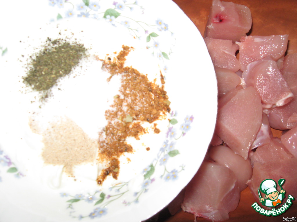 170 грамм обезжиренной сметаны смешиваем с гарам масалой, мятой, тмином и солью