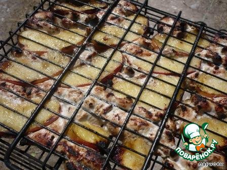 Шашлык из куриной грудки на решетке с карамелизованными яблоками