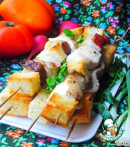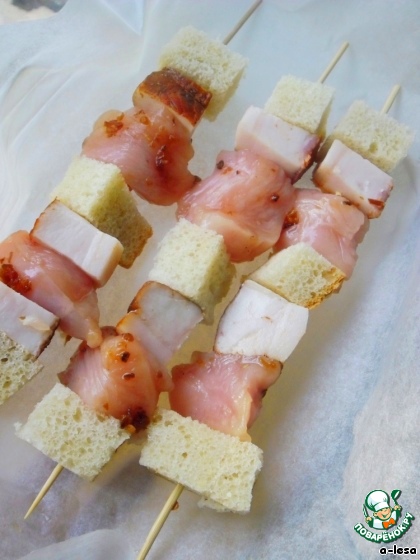 замариновать и нанизать на шпажки, можно без шпика, будет менее жирно.