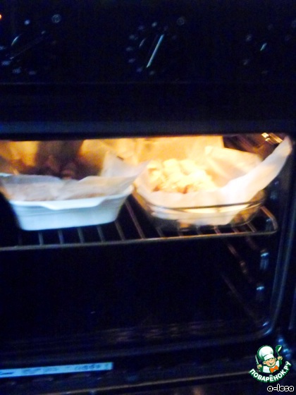 Запекать в разогретой духовке при 200 град. 5-7 мин., затем поднять на верхнюю решетку, под гриль, ещё на 5-7 мин.