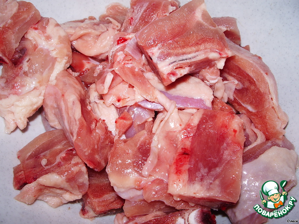 Срезать филе. Нарезать на кусочки. Иногда приходилось нарезать с косточкой.