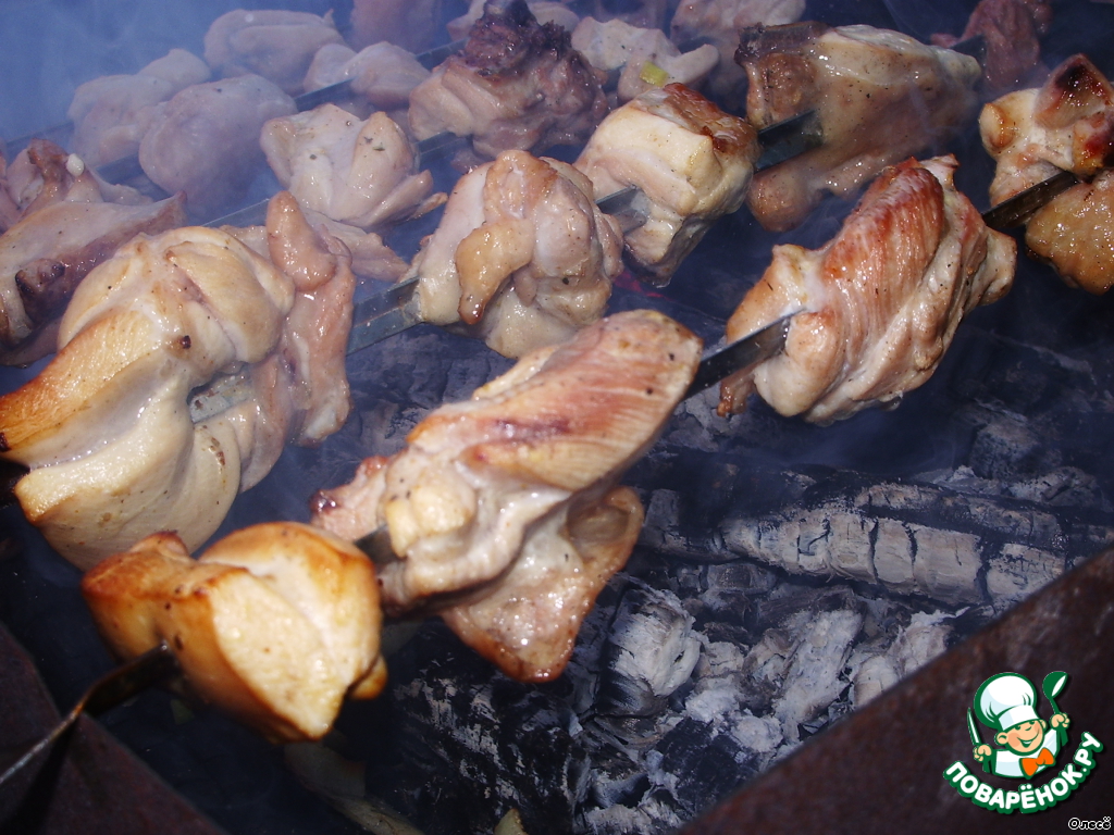 | Купила крупные российские окорочка. Как раз выдался теплый денек и захотелось чего-то пожарить на огне. Вот и результат: вкусные, ароматные, сочные шашлычки. |
