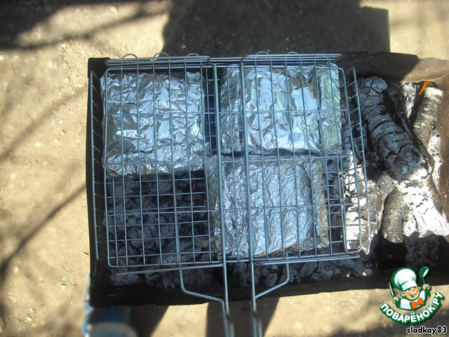 Заворачиваем фольгу так, чтобы маринад не вытекал.