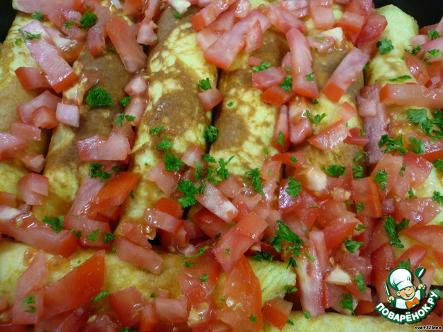 Посыпаем сверху мелко нарезанным помидором и остатками зелени.