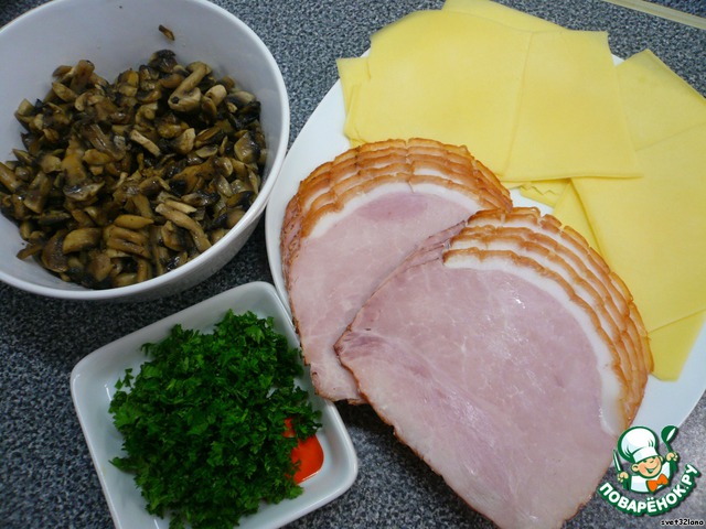 | Всем известны куриные грудки, нашпигованные ветчиной и сыром. В этом рецепте курочка отсутствует, но начинка сохранена в полном объeме. |