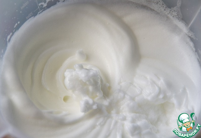 Белки взбить со щепоткой соли в густую массу до пиков. Важно: чашка и насадка миксера должны быть абсолютно сухими.