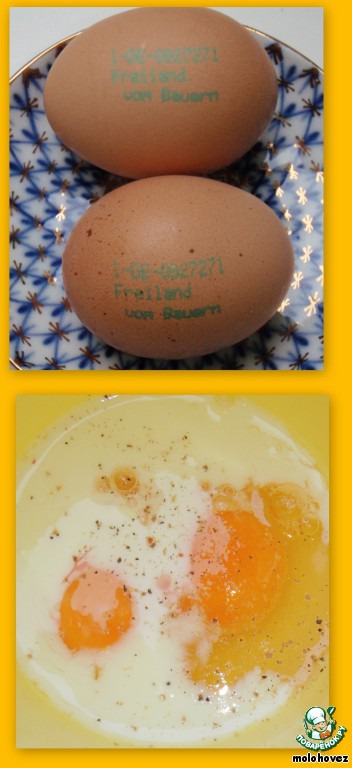 Для хорошего омлета очень важно, чтобы яйца были свежими! На фото на яйцах даже стоит штемпель, от какого фермера они получены!!!