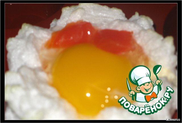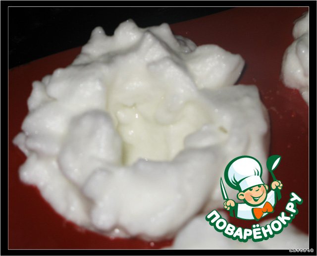 Выложить белок в формочки, сделав внутри небольшое углубление.