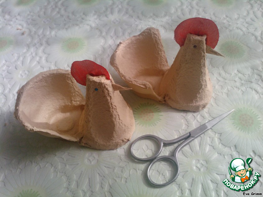 Гребешок я делала из листочка от декоративного, неживого цветка, а глазки из посыпки для куличей. :-) :-) :-)