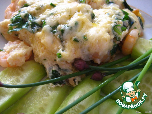 Омлет с креветками, для гурманов