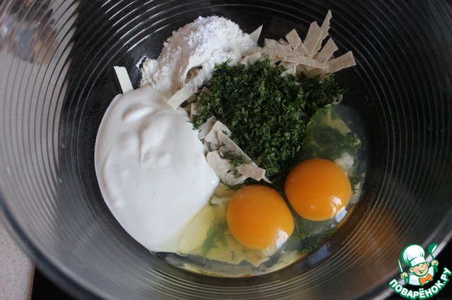 Перемешиваем. Вот такое должно получиться тесто. На вид, даже может показаться, что вряд ли все это дело схватиться. Если тесто будет слишком уж жидким - добавьте муки, если густым - разбавьте сметаной или кефиром.