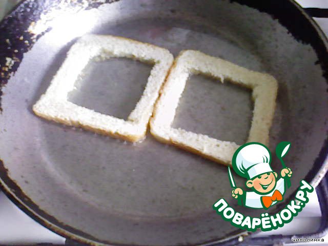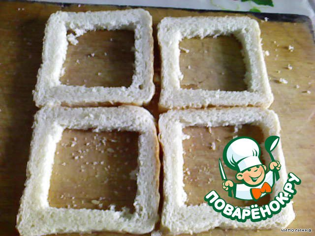 Из кусочков хлеба вырезаем середину.