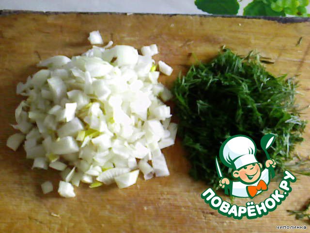 Нарезать мелко лук и укроп.