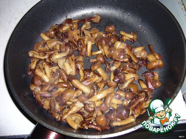 Пока варятся яйца обжариваем опята, после чего ставим их охлаждаться
