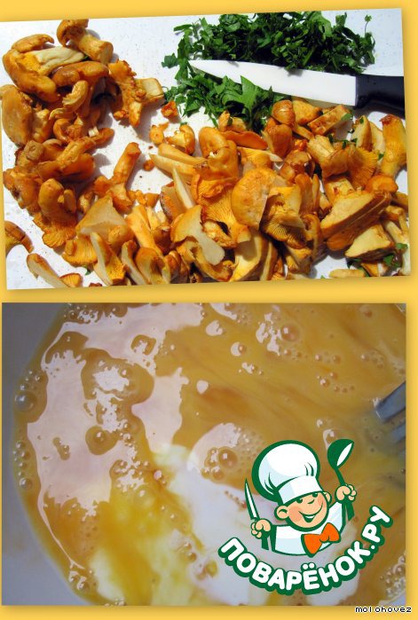 Предупреждение: лисички, которые я использовала, согласно местным правилам, не нуждаются в предварительном отваривании и подлежат лишь тепловой обработке, как свежие шампиньоны!!!