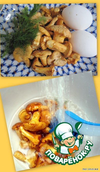 Лисички отряхивают, обрезают конец ножки. Кладут в миску и под