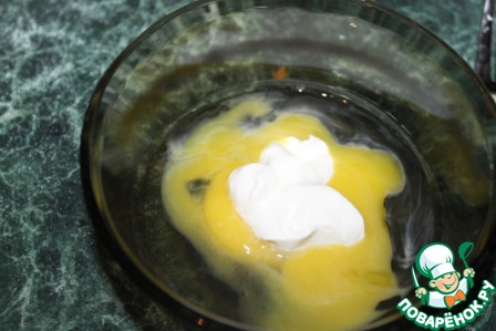 Смешиваем яйцо с солью и 1ч. л сметаны, немного взбить, вилкой или венчиком.