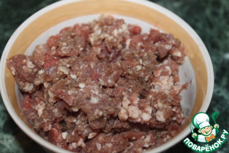 Добавляем в фарш мелко нарезанный лук, солим, добавляем специи, перемешиваем.