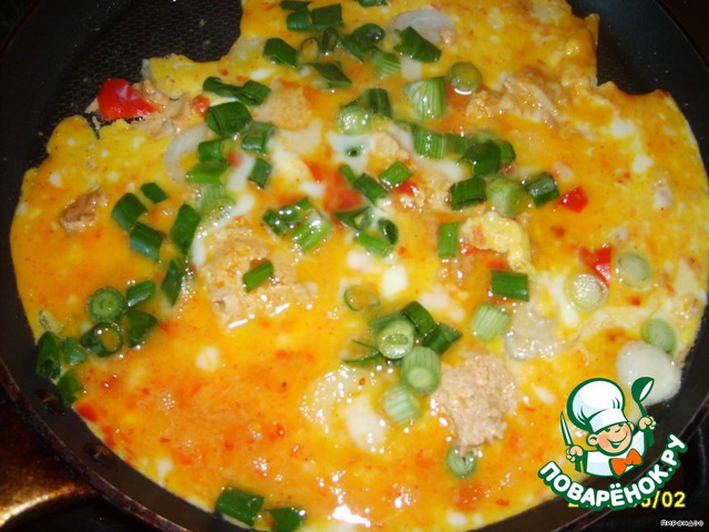 | Я делаю из икры рыбы вот такую заготовочку, которую потом можно кушать, намазывая на хлеб, на варeные яйца, а можно пожарить вот такой омлет! |