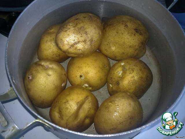 Пришли мы сегодня с катка - и начали творить.Правда днем еще я успела сварить картофель в мундире,поэтому к вечеру он остыл и ждал своего часа. Фото картофеля прилагается.