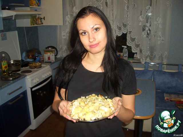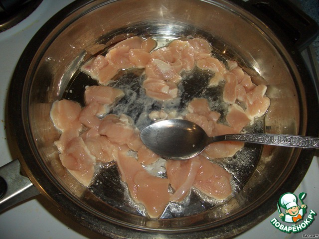 Я в это время занялась куриным филе. Резала его на тоненькие кусочки.