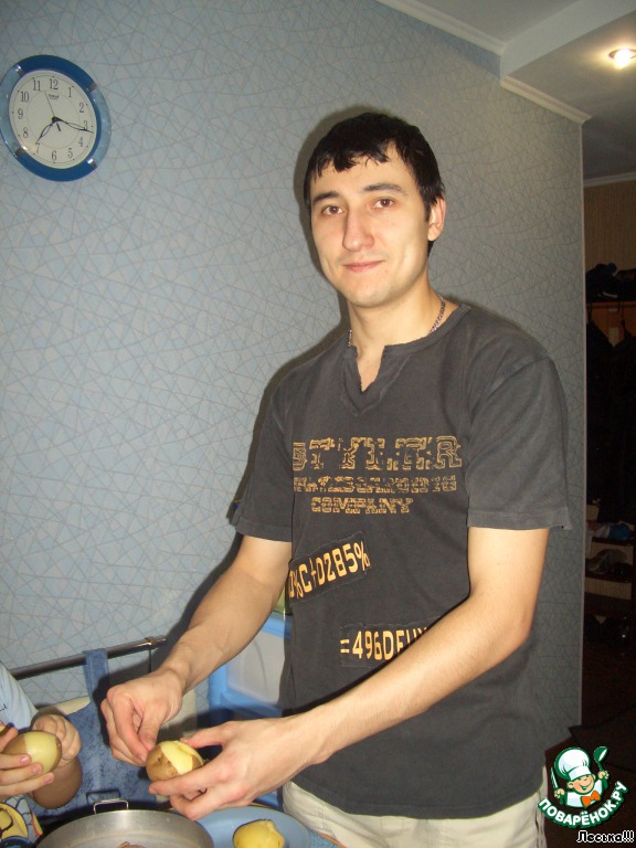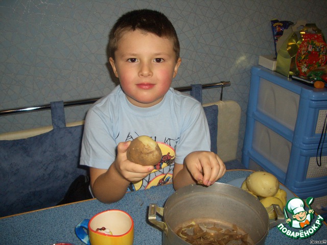 Это ответственное задание по очистке картофеля от мундира - я поручила сыну.