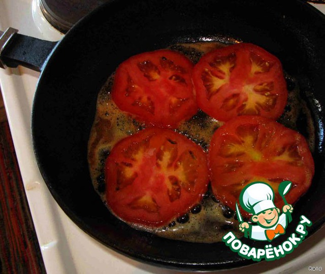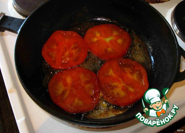 Выложить помидоры на горячую сковороду.