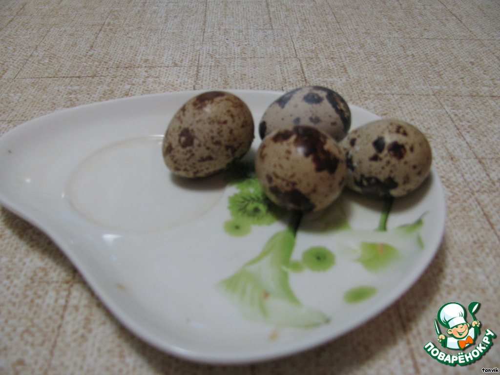 Берем перепелиные яйца, разбиваем их в мисочку.