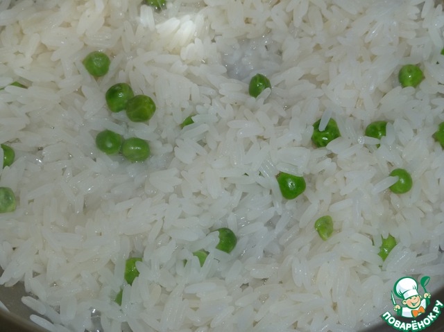 За 3-5 минут до окончания варки добавить зеленый горошек