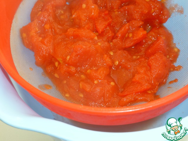 Томаты очистить от кожицы, измельчить, выложить в сотейник и довести до кипения, добавить сахар, по вкусу посолить и поперчить, тушить на слабом огне 10 мин.
