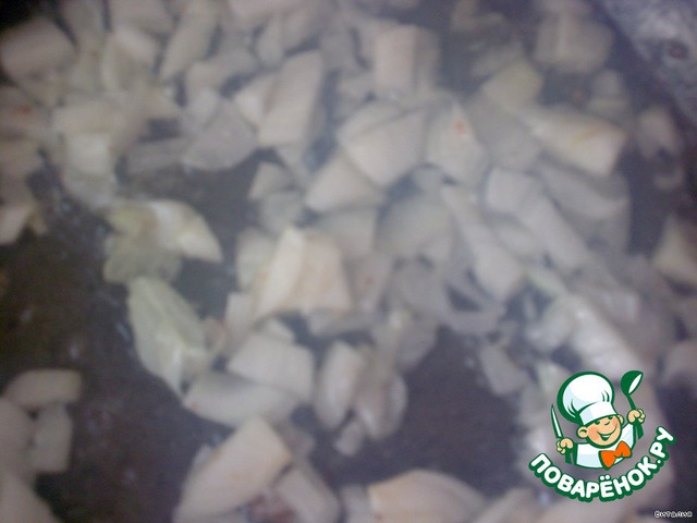 Лук порезать и обжарить на той же сковороде, где жарилиcь молоки.