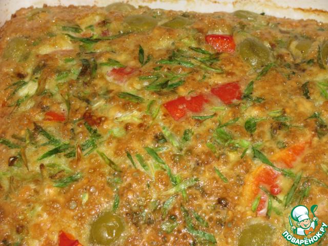 Всю эту красоту мы заливаем яичной массой и отправляем в разогретую духовку на 35-45 мин. при температуре 180 гр. Проверяем зубочисткой. Овощи, особенно помидоры дадут много сока! Ужин вышел отменный! Приятного аппетита!!!
