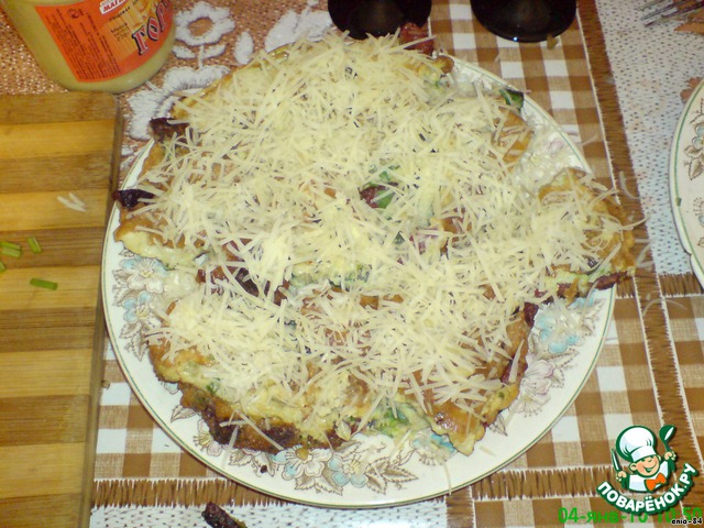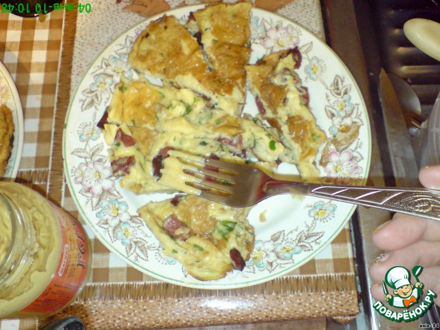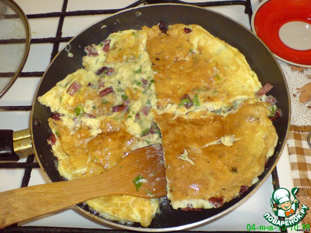 А чтобы было удобнее переворачивать, можно разделить омлет на сектора.