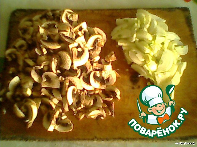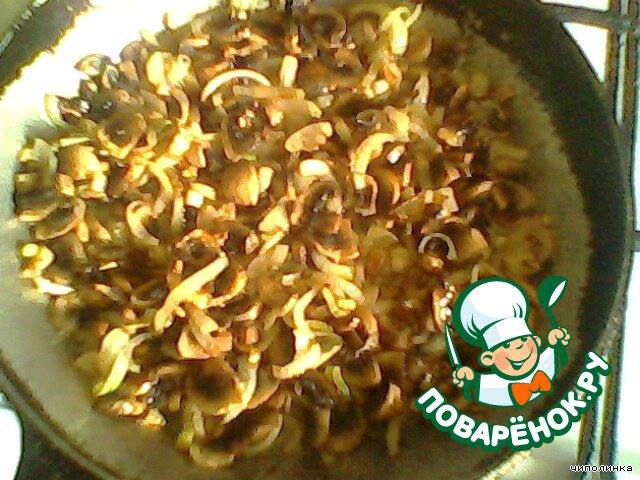 Обжарить лук и грибы на растительном масле до полуготовности.