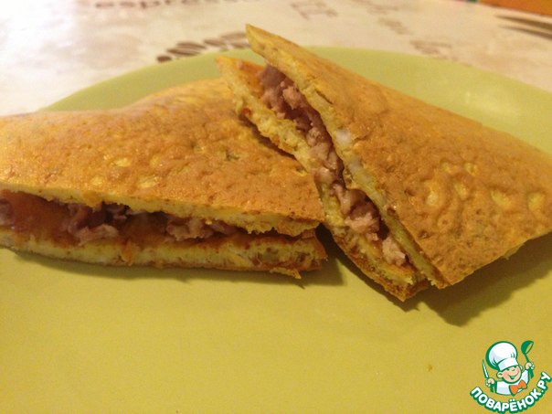 Два яица взбиваем, добавляем карри и чеснок, обжариваем с двух сторон. Снимаем со сковороды, разрезаем на четыре части, внутрь кладем тунца консервированного в собственном соку. Приятного аппетита. И будьте здоровы!