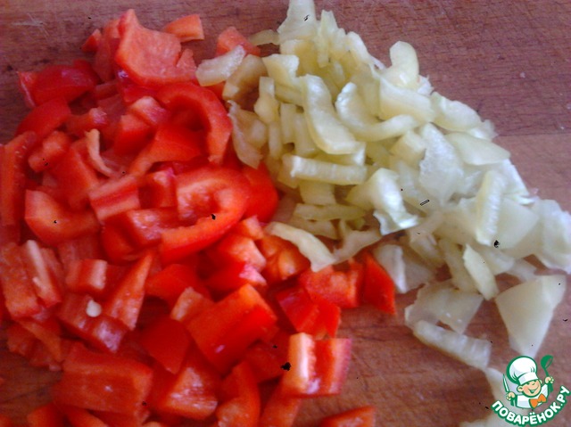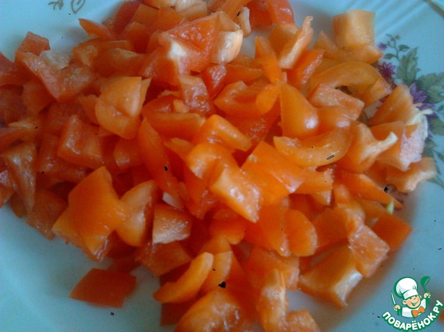 Обжарить мясо с луком минуты 3-4, добавить морковь, перец, помидоры и обжарить 5 минут на маленьком огне