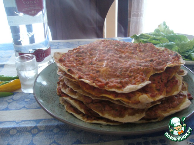 У нас обычно до стола ламанджо не доходит - дети выхватывают прям с горячего противня. Но в этот раз мы с дочкой воспользовались 35 -градусной жарой и загнали своих мужчин в бассейн, а пока они там балдели, нам с хозяюшкой удалось быстренько смастерить такую аппетитную горочку. Угощайтесь и ВЫ!!!