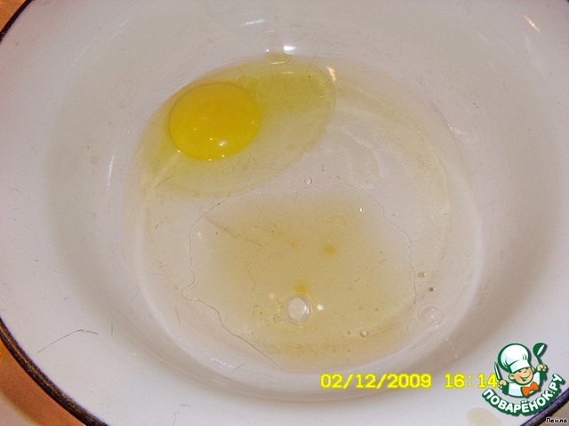 В чашку разбить яйцо (комн.t), добавить соль, растительное масло