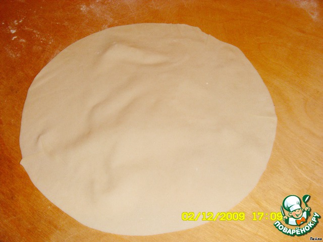 Теперь раскатываем наши шарики в круглую форму (опять же, в какой форме будете выпекать)тонко