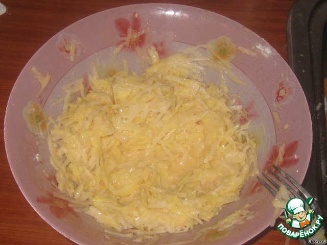 Драники делаем как обычно: моем картофель, трем, стекает или отжимаем, добавляем яйцо, муку, соль, перец.