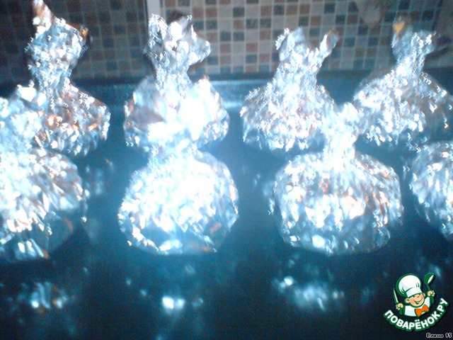 На стол подаются в том же виде, завёрнутые в фольгу!