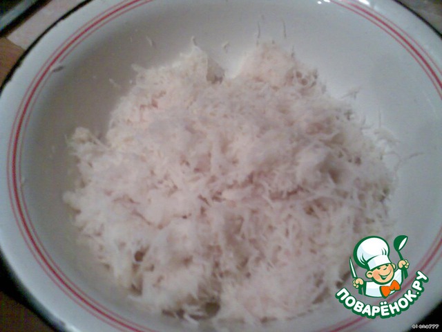 Картофель сырым натереть на тёрке, хорошо отжать.