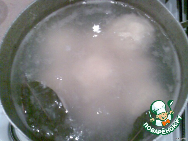 Прежде, чем лепить наши шарики, надо поставить греть воду(лучше в просторной кастрюле), добавив соль и лавровый. Как вода закипит кладем цеппелины и варим 15-20 минут.