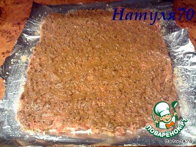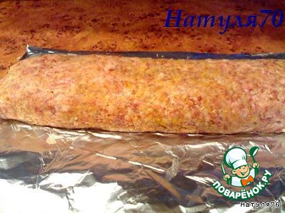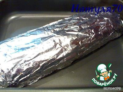 Заворачиваем рулет в фольгу и отправляем в духовку. Температура 200 градусов на 20 минут.