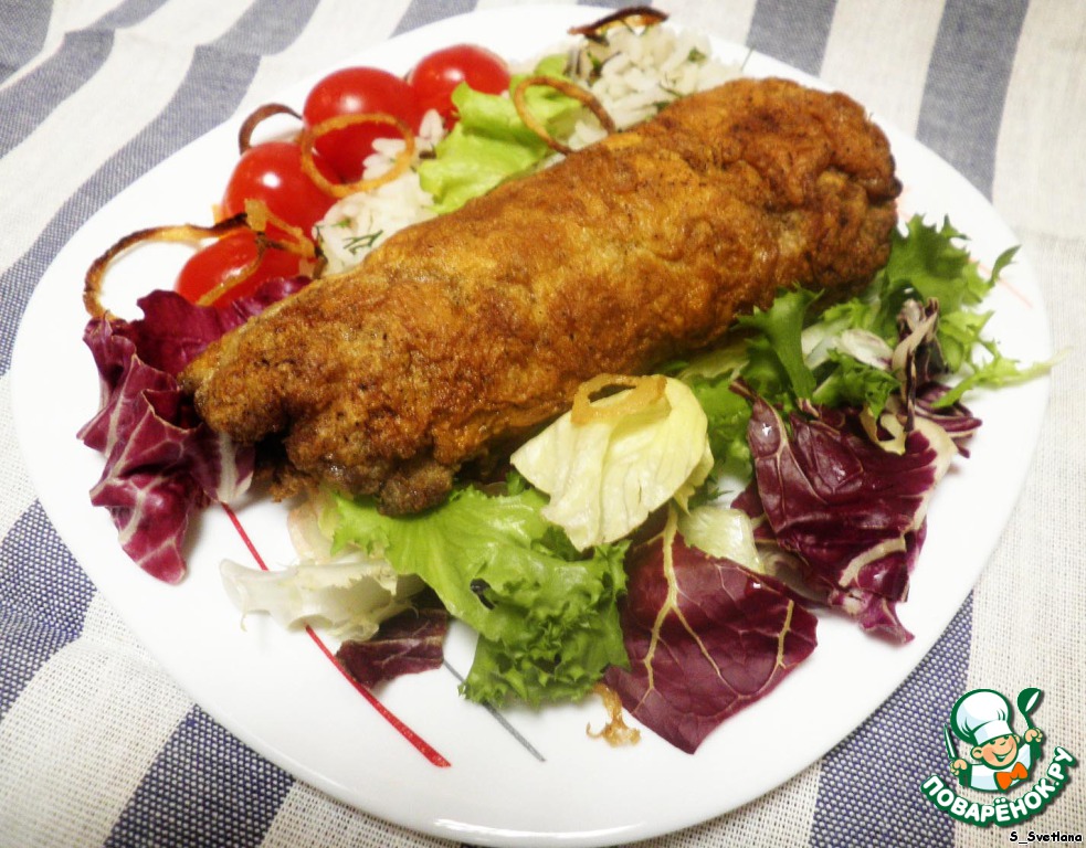| Данный рецепт, скорее всего, еще одна разновидность котлет, обжаренных в яйце – так подумала я, когда прочитала рецепт. На первый взгляд вроде все просто, но оказалось, что данное блюдо требует определенной сноровки. Но блюдо того стоит! Рецепт этого блюда был размещен на сайте в 2009 году пользователем Kirillovaov под названием "Бризоли" и иллюстрирован мной в рамках акции "Раскраски". |